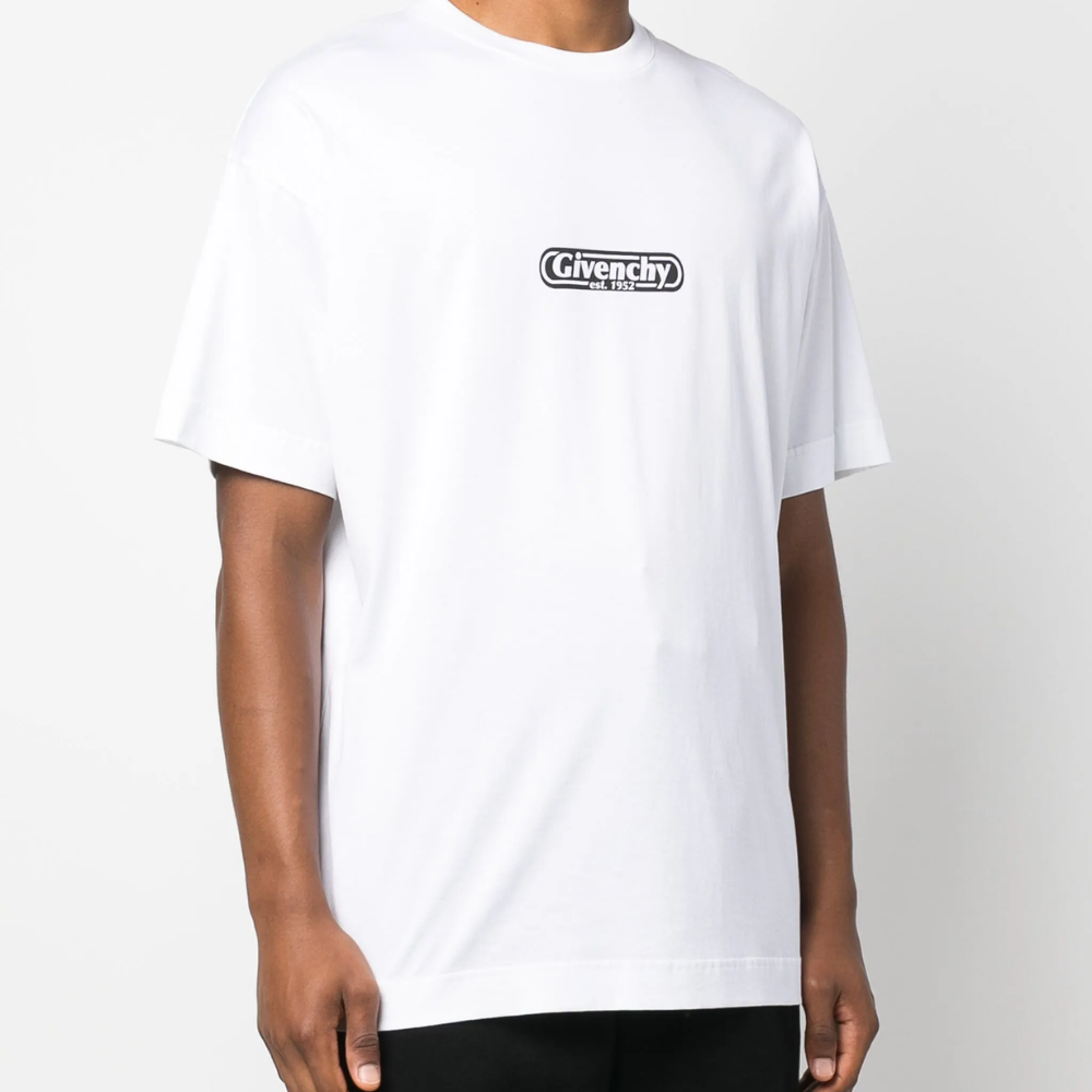 טי־שירט לבנה יוקרתית מבית Givenchy Paris, בעיצוב מודרני ונקי עם חתימת לוגו ייחודית.